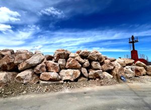 Sono arrivati in porto il pontone e i massi con cui si andranno a rinforzare le scogliere sia nella zona...