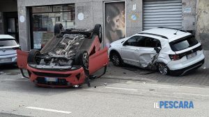Incidente stradale con un'automobile ribaltata lungo via Tiburtina Valeria a Pescara intorno alle ore 11 di venerdì 5 aprile. In...