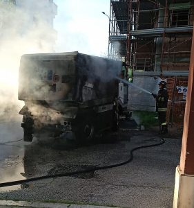 Incendio in via Monte Camicia a Pescara intorno alle ore 7 di venerdì 5 aprile. Il rogo ha riguardato una spazzatrice...
