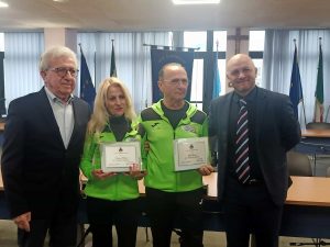 Il consigliere comunale di Montesilvano Enea D'Alonzo ha consegnato a due atleti di Montesilvano la targa in memoria di Pietro...