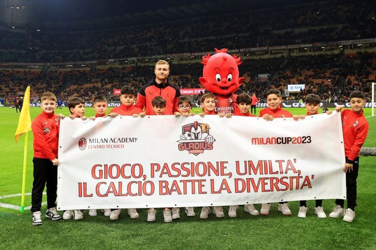 In occasione della partita di campionato Milan-Atalanta, ospiti abruzzesi in quel del Milan Academy: i bambini del Centro Tecnico Milan ASD Gladius Pescara, a San Siro per la premiazione dello striscione vincitore della 9° edizione della Banco Bpm Milan Cup.