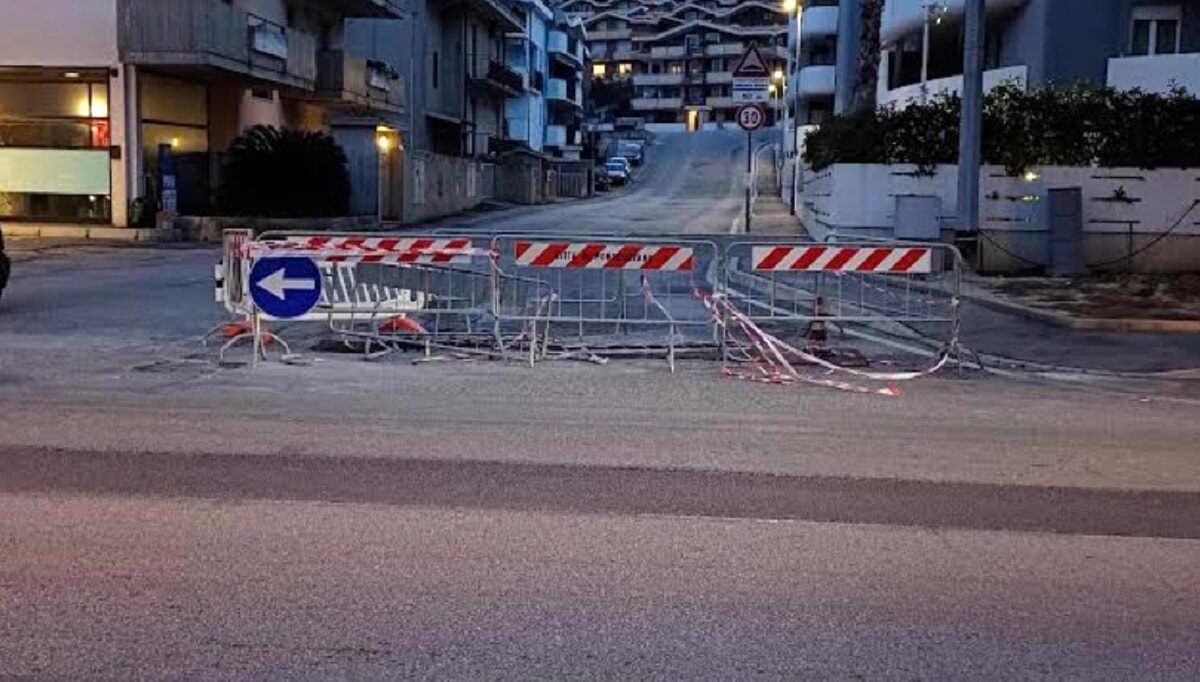 “Buongiorno, foto scattata ieri sera su via Verrotti a Montesilvano, di fronte al supermercato Oasi. Da 2 mesi le transenne sono state messe per dei tombini sconnessi sull’asfalto. Il…