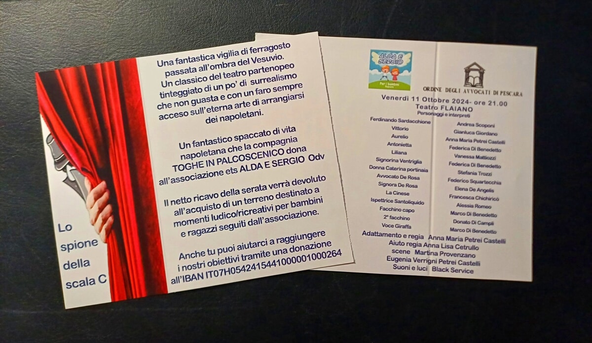 Gli avvocati, dimessa la toga, salgono sul palcoscenico per solidarietà e diventano attori e attrici. Il prossimo 17 novembre porteranno sul palco lo spettacolo “Lo spione della scala C” all’auditorium Flaiano.